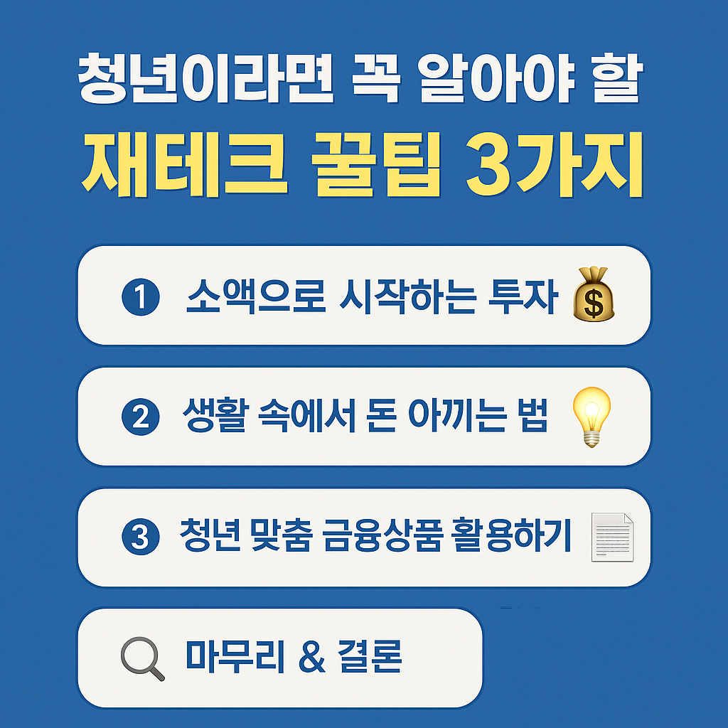그래서 오늘은 청년들을 위한 현실적인 재테크 꿀팁 3가지를 알려드릴게요! 💡