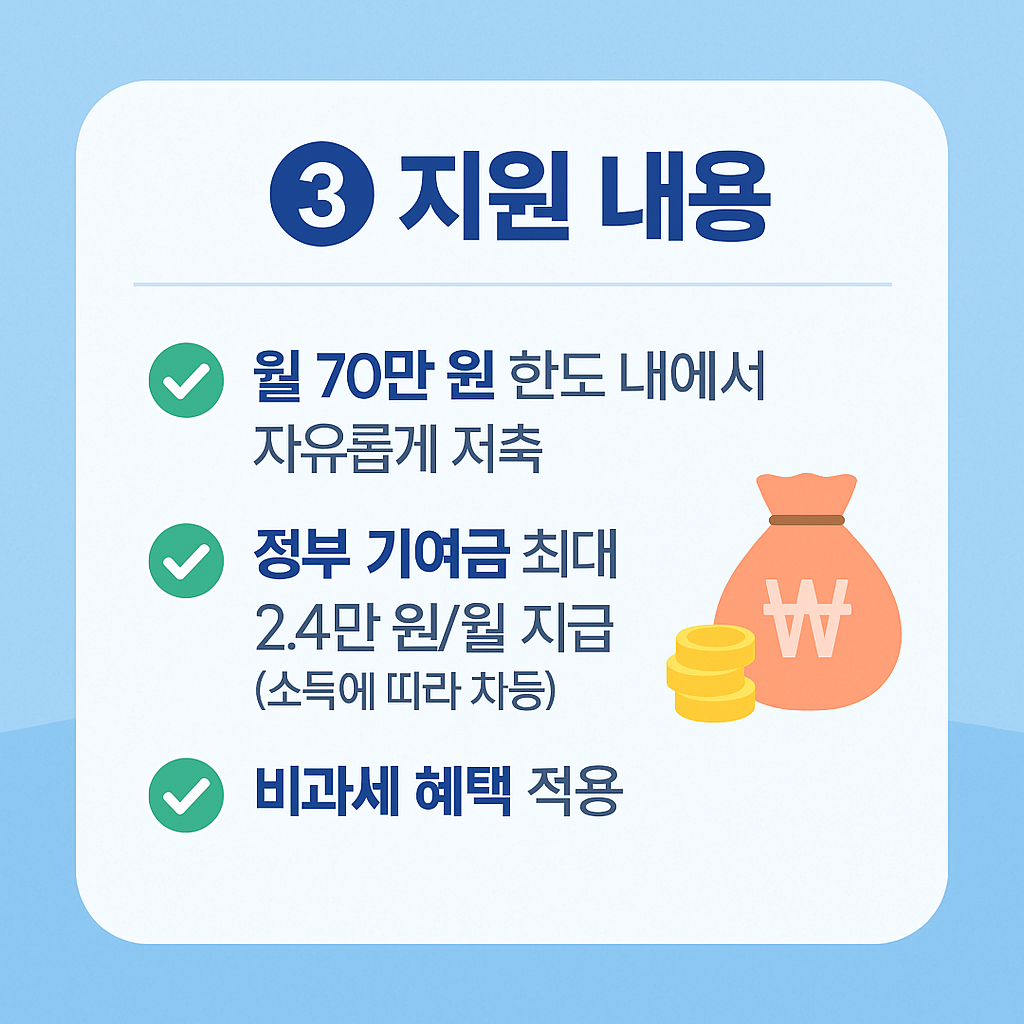 - ✔️ 정부 지원금과 비과세 혜택이 제공되어 더 높은 이자 효과를 기대할 수 있어요.