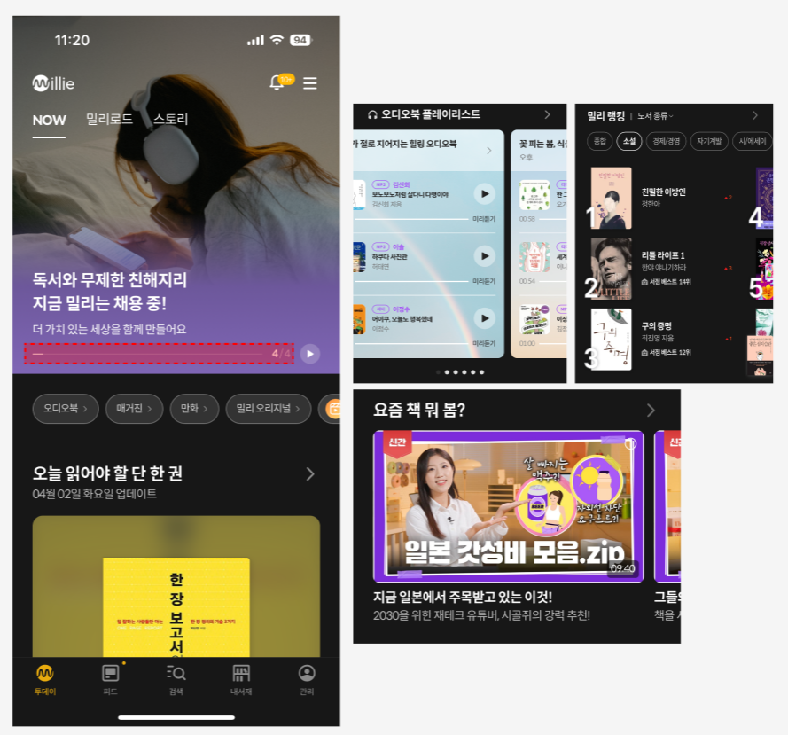 밀리의 서재는 독서와 더욱더 친근하게 만들어주고 책과 함께하는 일상을 가치있게 만들어주는 것을 목표로하고있습니다.