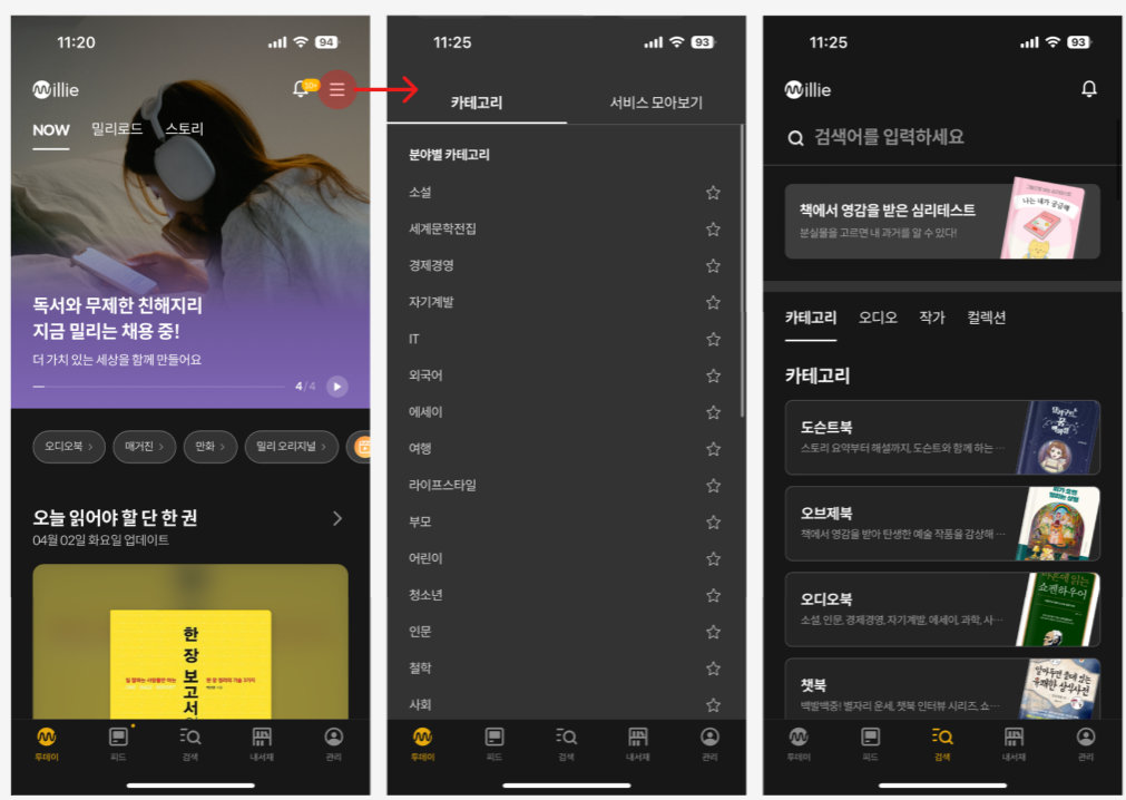 밀리의 서재 어플을 레퍼런스 할 예정이다.