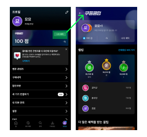 리뷰나 찜한 콘텐츠를 찾을 수 있었다. 특이한점은 '쿠플클럽'이라는