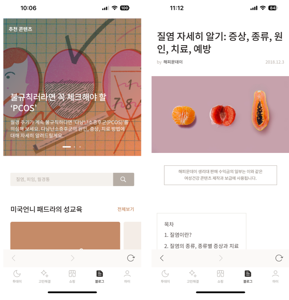 블로그라는 영역은 기본적인 정보나 남/가족들에게 물어보기 민망한 정보들에 대해서 알기 쉽게 설명해준 페이지이다.