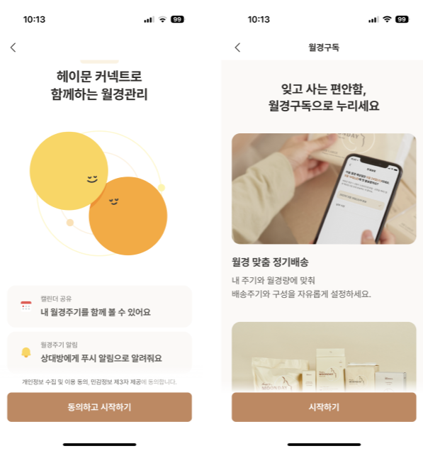 헤이문은 월경을 예측하고 다양한 월경동을 케어하고 개선할 수 있도록 도와주는 어플이다.